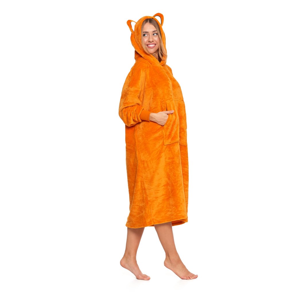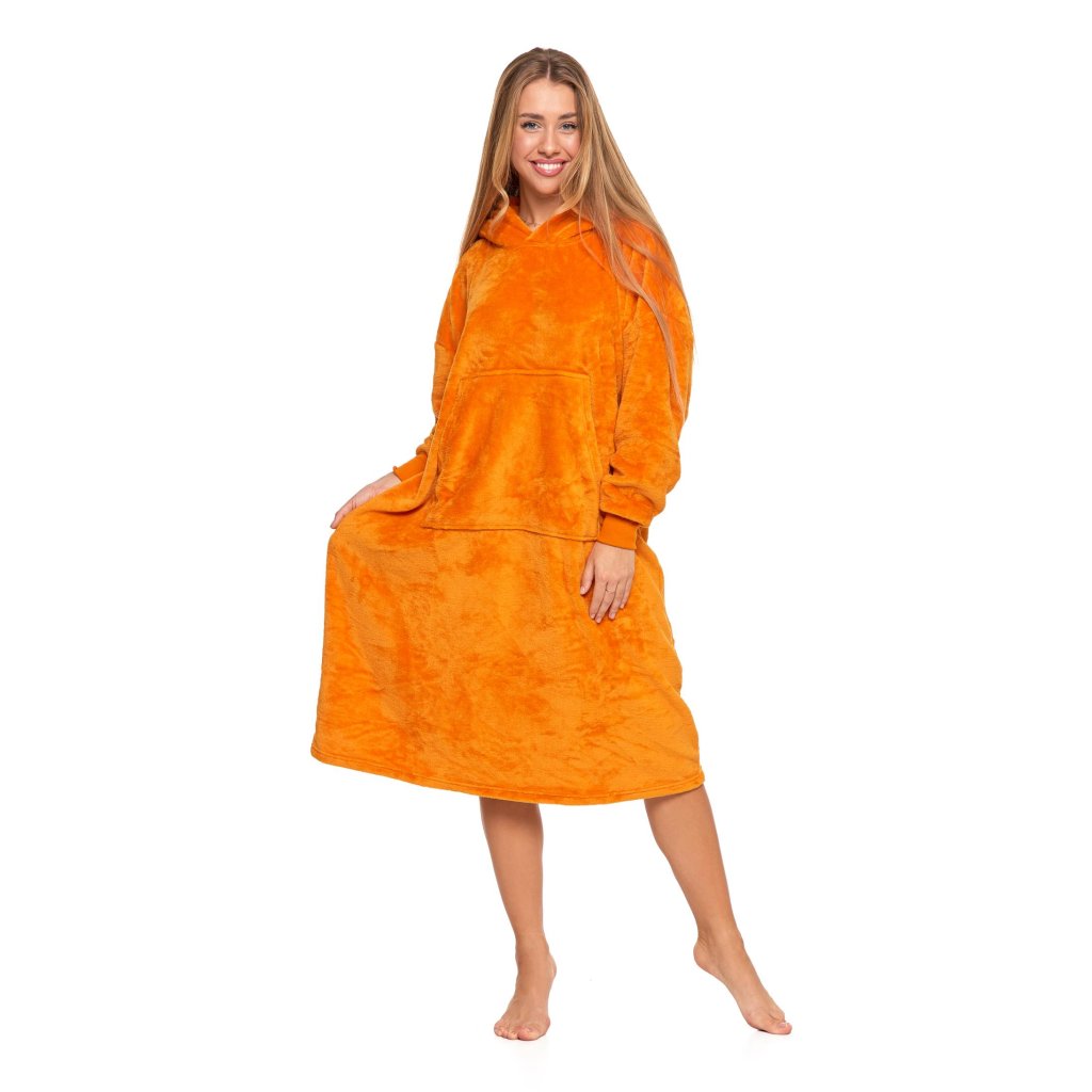 Teplo a pohodlí, zábavu a styl to vše vám nabízí dlouhá mikinová deka/šaty z kolekce Koco. Geniální trend pro chladné večery v pohodlí domova - objemná a hřejivá mikina s kapucí, která nahradí pyžama, deky, mikiny nebo župany. Deková mikina vyrobená z velmi teplého měkoučkého plyše s hustým hladkým chlupem a jako bonus, možnost ji sbalit do malého polštářku. Ležérní volný střih oversize zajišťuje univerzálnost velikost a bude slušet každému! A přesně takhle má vypadat - volná a objemná, aby se každý cítil jako v měkké a pohodlné dece, do které se může zabalit. Velkou předností tohoto modelu je široká, hluboká kapuce, manžety na rukávech a velká, prostorná klokaní kapsa, do které si můžete schovat ruce pro zahřátí, nebo telefon a svačinku.