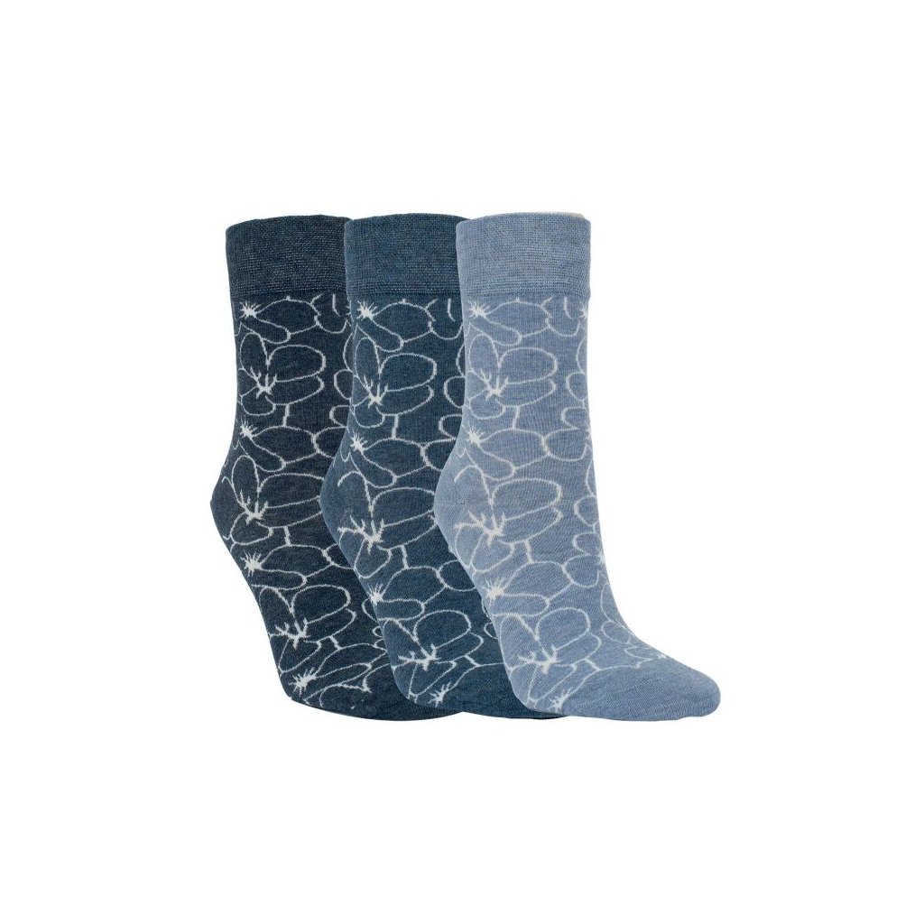 Dámské zdravotní ponožky s volným, nestahujícím lemem kombinují pohodlí a styl. Jednobarevný elastický materiál v zajímavých odstínech modré, s aplikací kytek zaujme nejen vzhledem, ale i funkčností. Vysoký obsah bavlny dodává ponožkám prodyšnost a měkkost, plochý šev na špici (řetízkování) zajišťuje pohodlí bez nepříjemného tlaku.